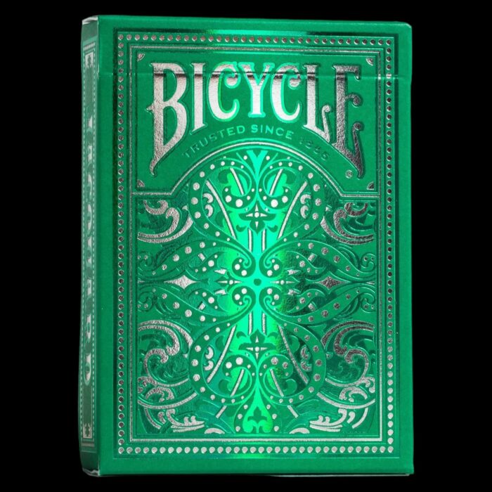 📖 Bicycle Jacquard gets its design inspiration from complex, ornate patterns often woven into fabric resulting in beautiful displays. The Bicycle Jacquard tuck case features emerald green and silver foil details woven throughout creating a dazzling and dramatic appeal. Just as Jacquard machines revolutionized Looms with their “chain of cards” operation, this premium deck of cards has been designed and manufactured with the same sophistication and innovative technology.