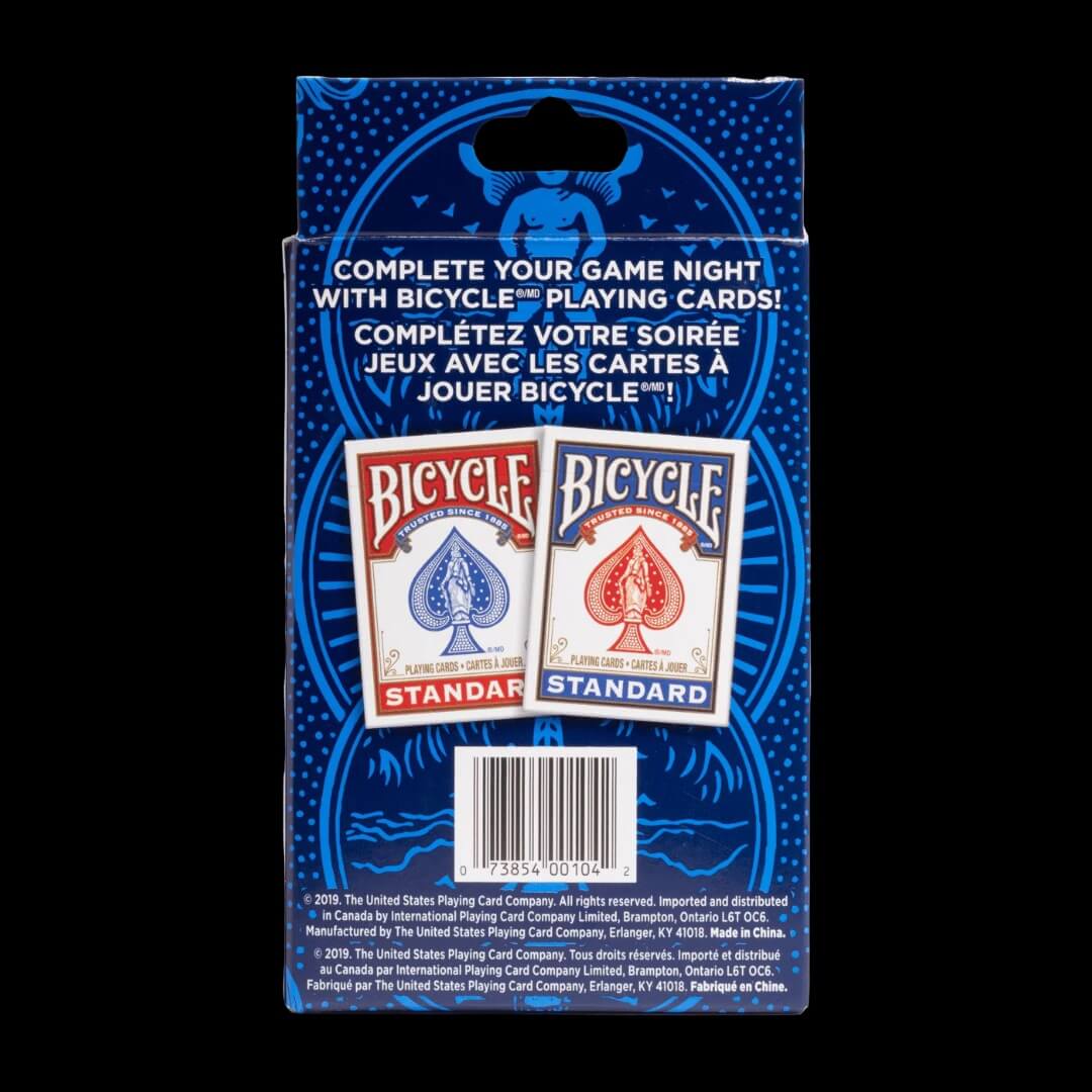 ''Bicycle Playing Cards'' карти за игра Bicycle са водещ бранд за производство и печат на висококачествени карти. Подходящи са за покер, белот, трикове с карти, магия, cardistry и визуални трикове. Ние от Кендама България предлагаме голям асортимент от дизайнерските им тестета. Bicycle Playing Cards е марка карти за игра. От 1885 г. насам марката Bicycle се произвежда от печатарската компания United States Printing Company. През 1894 г. се превръща в United States Playing Card Company (USPCC), понастоящем със седалище в Ерлангер, Кентъки. "Bicycle" е търговска марка на тази компания. Името "Bicycle" е избрано, за да отрази популярността на велосипеда в края на XIX век. Картите Bicycle следват модела на френската колода, като съдържат 52 карти (по 13 от две червени и две черни бои) и включват два джокера. Търговската марка Bicycle е отпечатана върху асото пика. Сегашните колоди съдържат и две информационни карти/карти с инструкции. Картите за игра на Bicycle се продават в различни дизайни, като най-популярният е дизайнът Rider Back. Предлагат се със стандартни индекси в размер за покер (3,5 на 2,5 инча [8,9 см × 6,4 см]), бридж (3,5 на 2,25 инча [8,9 см × 5,7 см]) и колоди за пиночле, колоди за покер "Jumbo Index" и карти Lo Vision, които са предназначени за хора с увредено зрение. Други видове карти с различни гърбове, размери, цветове и нестандартни дизайни се произвеждат за магически трикове и като нови и колекционерски тестета.