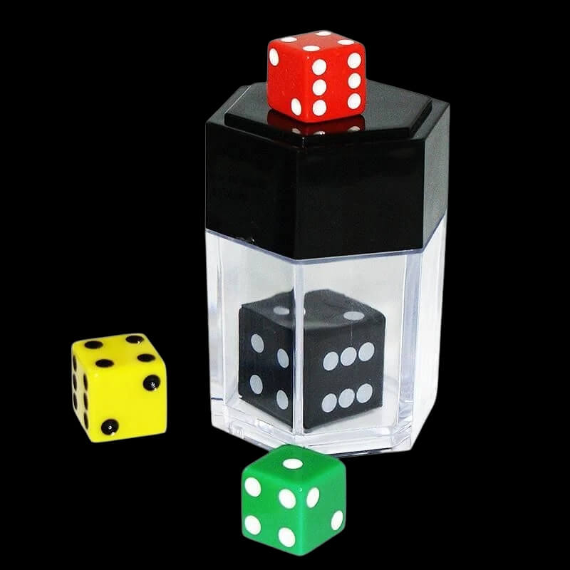 📖 Aiming to realize the best product possible, we have improoved this item that now has an even better quality and functionality. Show your audience a white die inside a transparent container. Shake the container and instantly, without any cover or suspicious move, the die “explodes” changing into 8 tiny white dice! The die can also change into a ball, a sugar cube, etc. With this set another routine, which raises the level of magic and mystery in the effect, is also possible. Here it follows: show the die inside the transparent case. Ask a spectator choose one of three differently colored dice. Now shake the case and, instantly, the white die changes to the color of the selected die!