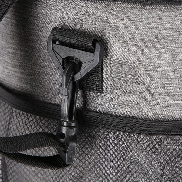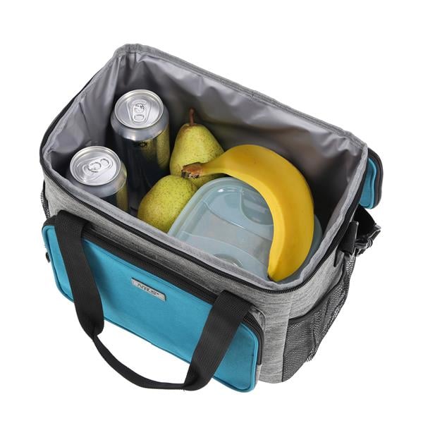 Made of durable 600D Oxford fabric and lined with PEVA insulation, the main compartment provides excellent thermal protection. The bag also offers additional space through two side mesh pockets. It also has a front zippered pocket, ideal for storing items that do not require thermal insulation. With a capacity of 13 liters, it is quite spacious and easy to carry. It will be your reliable partner for any outdoor adventure. The bag is equipped with both a comfortable shoulder strap and a sturdy hand grip.