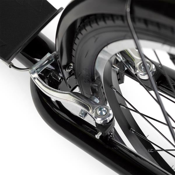 The maximum user weight is: 120 kg. The frame and handlebars are made of durable steel. The handles are screwed, which means they do not rotate or slide down. The WHS260 is ideal for riding in alleys, paved sidewalks and for off-road escapes. Effective and safe braking is ensured by a steel brake mounted at the front and rear.