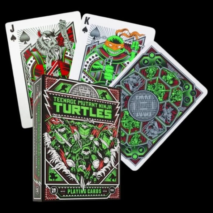 📖 Cowabunga! Premium playing cards produced by theory11. Made in America. Traverse the sewers of New York City’s underground with fully custom artwork of your favorite characters – including Leonardo, Michelangelo, Donatello, and Raphael – each depicted with vivid illustration, ready for action! It’s about time for some mutant mayhem…