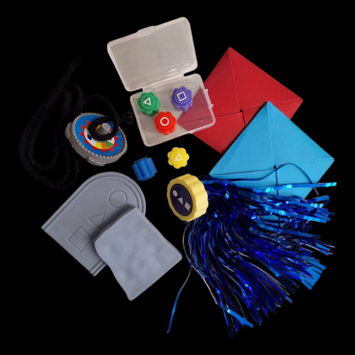 С комплект игри от Squid Game ще можете да играете пълния рунд на игри от сериала Squid Game. Състезавайте се с приятели и вижте кой ще успее да изпълни задачите по-добре и по-бързо от другите. Комплектът включва: Голямо гонги и кутийка за съхранение, пумпал с връв, 2 камъка (гума), 2 бр. ddakji (хартия), jegi.
