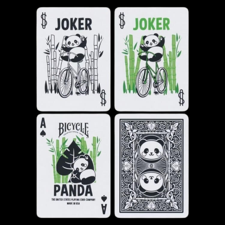 Карти за игра – Panda – Bicycle playing cards са възхитително допълнение към всяка колекция от карти. Те съчетават надеждното качество на Bicycle с очарованието на едно от най-обичаните животни в природата. Всяка от картите в това тесте е с персонализиран дизайн на гърба и court картите с панда. Това ги прави идеален избор както за ентусиастите на пандата, така и за любителите на животните. Колодата е уникално оформена с мотив на листа, а всички court карти са изобразени с панди, които държат любимата си храна – бамбук.