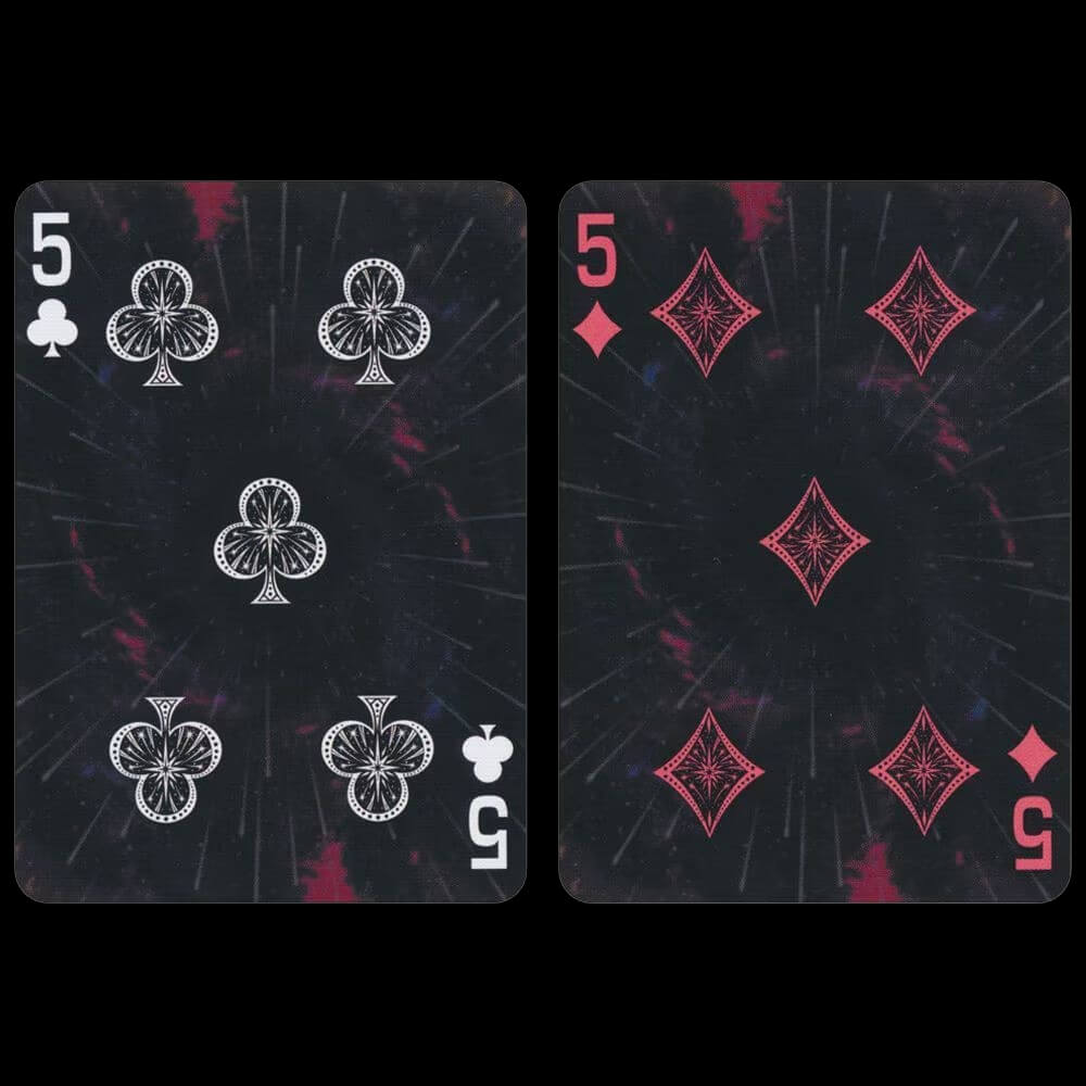 Разгърнете магията на нощното небе с Карти за игра – Stargazer Falling Star – Bicycle playing cards. С помощта на сребърно фолио върху тестето и специално проектирани court карти. Тези карти с високо качество имат хипнотизиращ дизайн, вдъхновен от падащите звезди. Със зашеметяващо художествено оформление и ярки цветове това тесте карти за игра е истинско произведение на изкуството. Изработени от първокачествен картон, те имат air-cushion покритие за безпроблемно разбъркване и безпроблемно боравене, което подобрява цялостното ви преживяване при игра. Независимо дали организирате семейни вечери на игрите, участвате в покер турнири, изпълнявате магически трикове или практикувате картоиграчество, тези карти завладяват въображението с всяко разбъркване и раздаване.