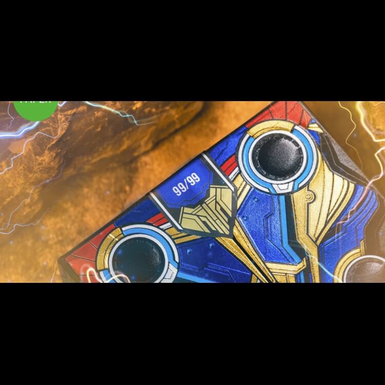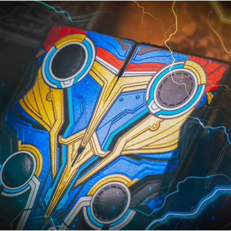 Уникална колода, вдъхновена от Thor: Love & Thunder. Със синьо-жълти мотиви и Stormbreaker на кутията