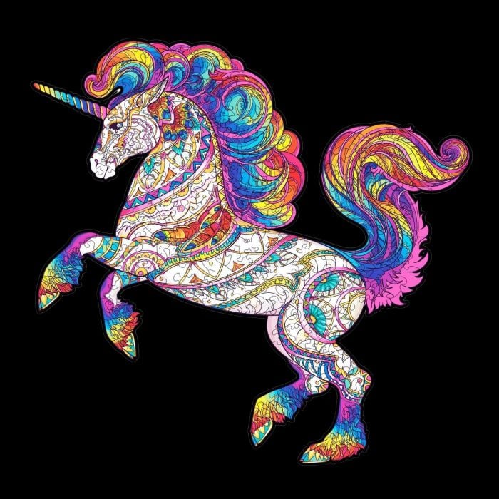 Дървен пъзел – Unicorn – Fantasy Puzzles wooden puzzle е пъзел с очарователни цветове и форми. Всеки пъзел съдържа много цветни форми на животни, с които да играете. Всяко парче от пъзела е уникално по своята форма. „Fantasy Puzzles“ са форма на занимание за свободното време, която ще ви помогне да избягате от ежедневните грижи и да се потопите във фантастичния свят на митологията, с неговите уникални цветове и форми.