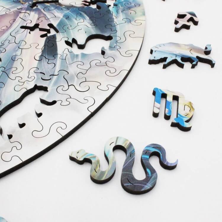 Fantasy Puzzles са дървени пъзели с очарователни цветове и форми. Всеки пъзел съдържа много цветни фигури на животни, с които да си играете. Всяка част от пъзела е уникална по своята форма. Пъзелите са форма на развлекателна дейност, която ще ви помогне да избягате от ежедневните грижи. Дървен пъзел – Zodiac: Aquarius – Fantasy Puzzles wooden puzzle е от серия пъзели, базирани на астрологията. Всеки пъзел изобразява разположението на звездите от съответния знак на небето.