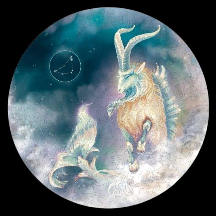 Fantasy Puzzles са дървени пъзели с очарователни цветове и форми. Всеки пъзел съдържа много цветни фигури на животни, с които да си играете. Всяка част от пъзела е уникална по своята форма. Пъзелите са форма на развлекателна дейност, която ще ви помогне да избягате от ежедневните грижи. Дървен пъзел – Zodiac: Capricorn – Fantasy Puzzles wooden puzzle е от серия пъзели, базирани на астрологията. Всеки пъзел изобразява разположението на звездите от съответния знак на небето.