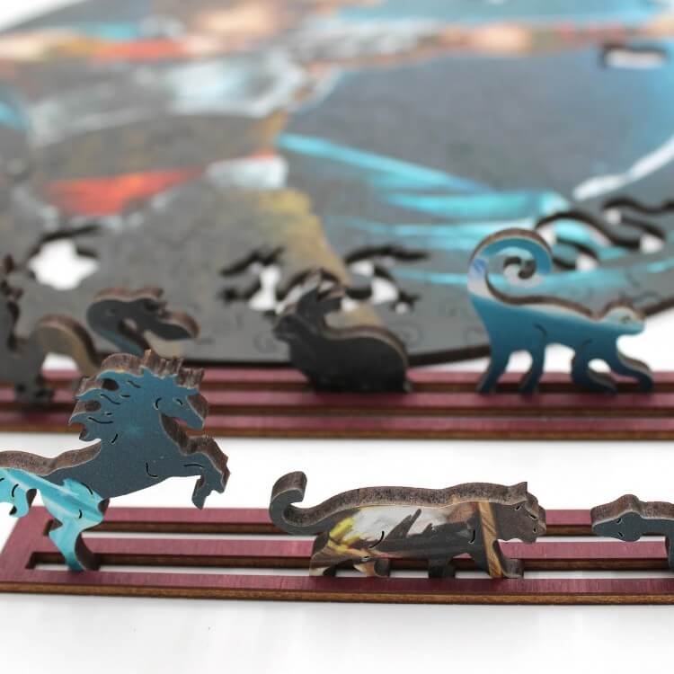 📖 Fantasy puzzles are wooden puzzles with enchanting colours and shapes. Each puzzle contains many colourful animal shapes to play with. Each puzzle piece is unique in its shape. „Fantasy puzzles“ are a form of leisure activity that will help you to escape from everyday worries and immerse yourself in the fantastic world of mythology, with its unique colours and shapes.