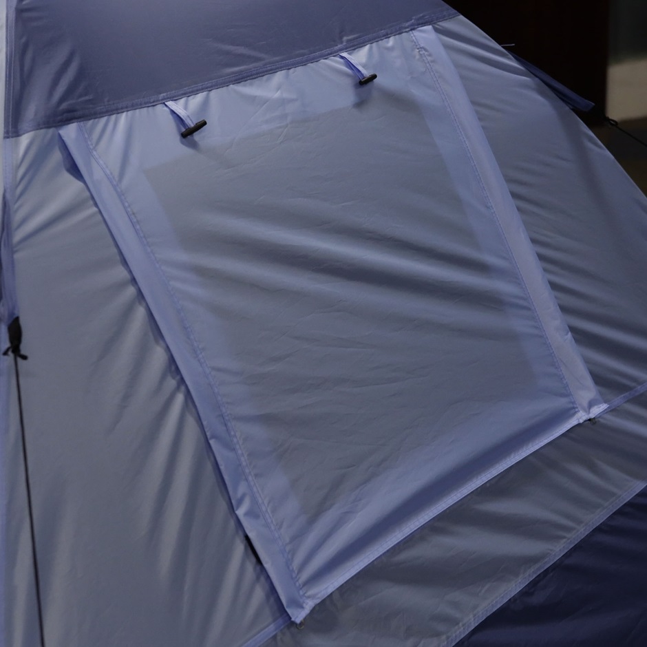 Допълнителен слой от мрежа против комари, поставена на вратата и прозорците на тази палатка за планина, не само предпазва от насекоми и комари, но и осигурява защита от слънчевите лъчи.