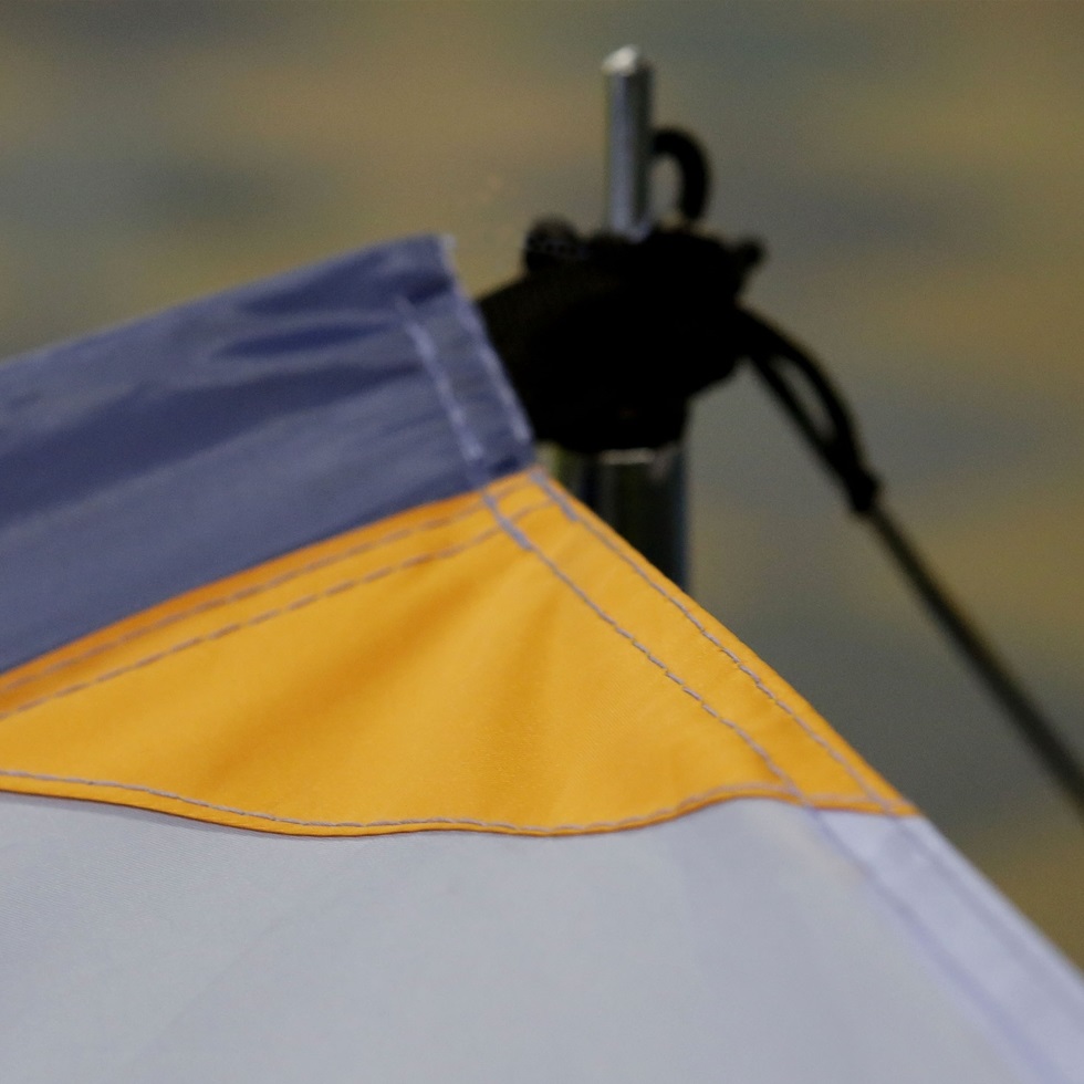 Stability : fiberglass panels. reinforcements at all stress points. pegs. pre-attached tensioners.