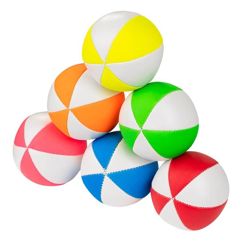 📖 These 6-panel juggling balls are a ‘pro’ version of our popular star balls. They are made from strong faux leather and are built to last. The toughness of the material used makes them ideal for outdoor juggling. In addition, the UV panels look great under a black light and increase the ball’s visibility during the day.