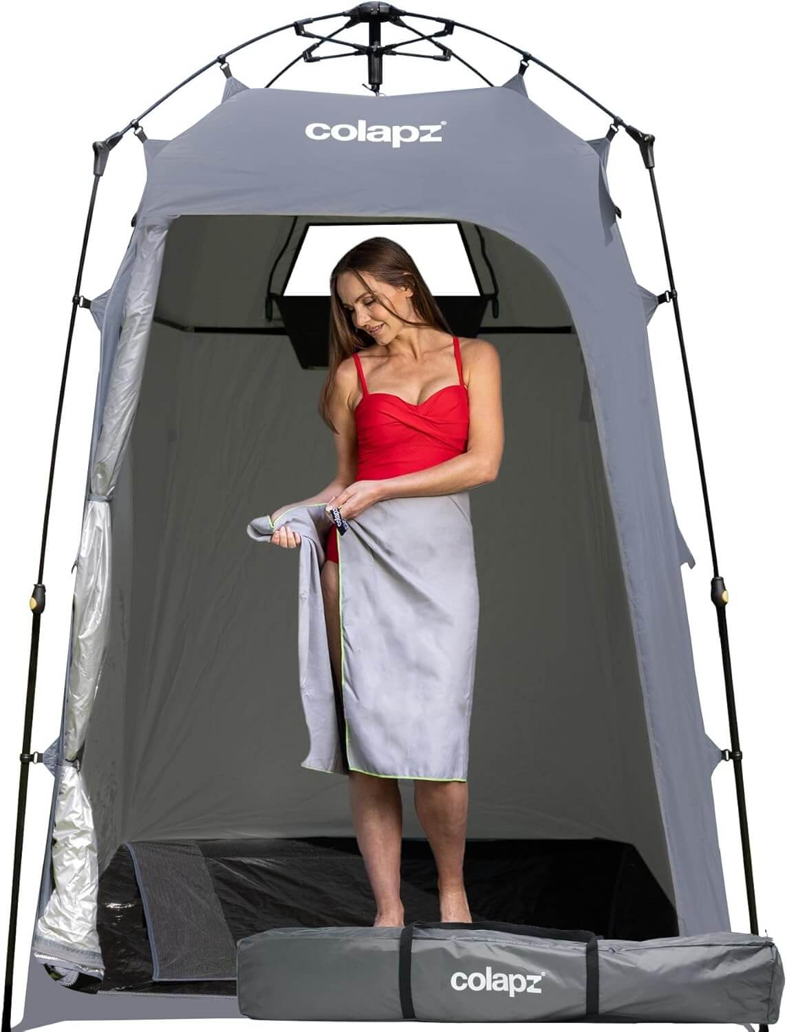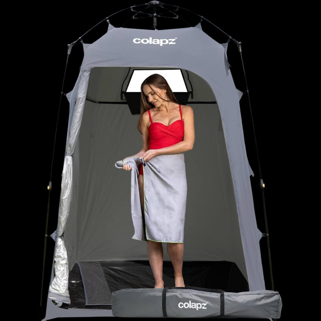 С впечатляваща височина от 2.1 метра и просторен дизайн, палатката позволява да се движите свободно вътре, без ограничения. Това я прави изключително удобна както за душ, така и за съблекалня на плажа или къмпинга.