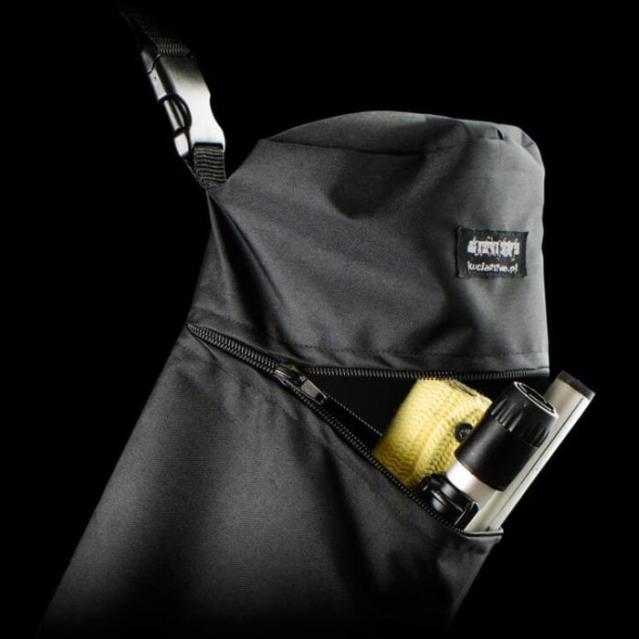 Чанта за стаф – KT staff bag е здрава чанта от PVC с държач за през рамо. Има удобен цип за затваряне. Тя предлага перфектна защита за вашия стаф при пътуване или съхранение. Събира два или три стафа. Тя не само предпазва от огнения прах, но и блокира до известна степен миризмата на парафин. Изработена е от плътен cordura материал, който е водоустойчив и супер издръжлив.