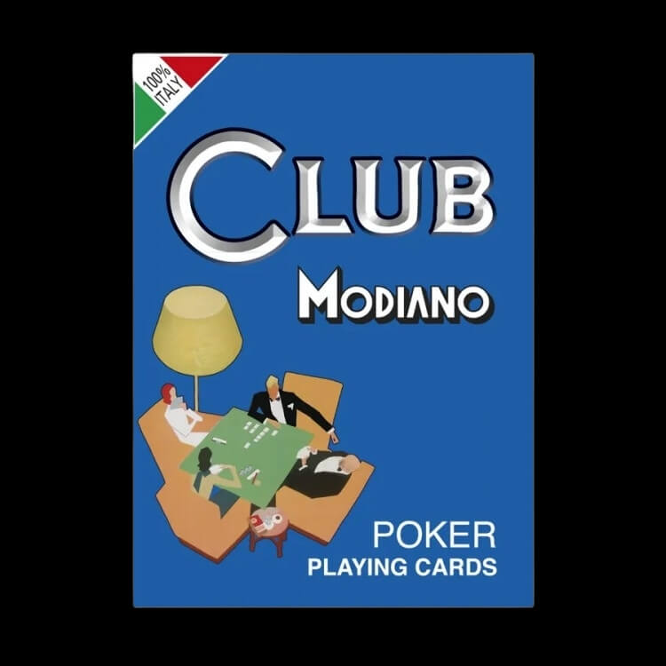 Карти за игра – Poker Club Blue – Modiano playing cards са със стандартен индекс в 4-те ъгъла. Тестето е кръстено на известната серия цигарена хартия, произвеждана от самите Modiano, едно тесте, изработено от лек и лесен за употреба картон. Modiano е референтна марка в света на игралните карти в Италия и чужбина. Основана в Триест през 1868 г. от Саул Модиано. Италианската компания е специализирана в производството на карти за игра, таро карти и хартиени продукти.