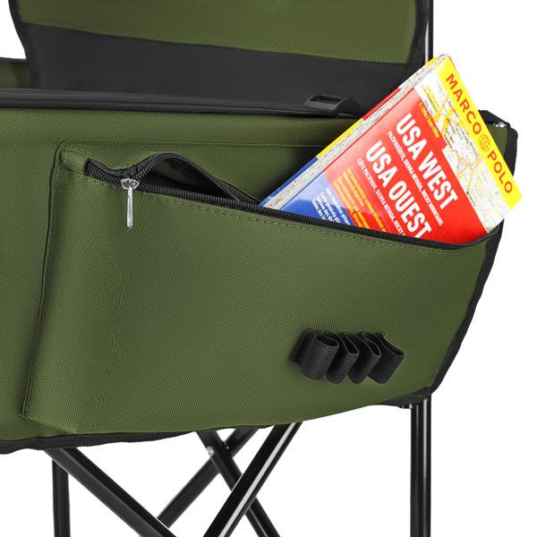 Отличава се с допълнителни функции, които подобряват неговата функционалност. Вградените странични джобове ви позволяват да съхранявате малки предмети като напитки, аксесоари за пътуване или леки закуски. Освен това на гърба на облегалката има мерителна чаша, която може да бъде полезна в различни ситуации по време на излети на открито, като риболов или други дейности, при които точните измервания са от значение.