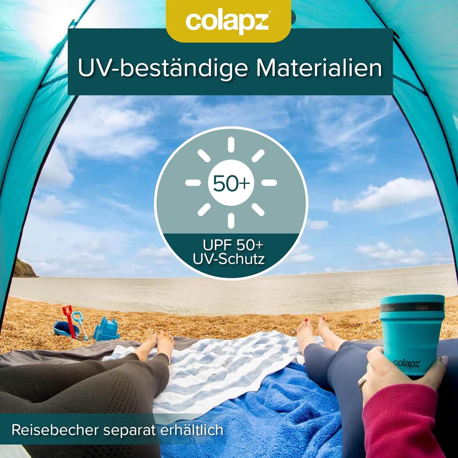 📖 Плажна палатка Pop Up UV50+ – Сенник за плаж с бърз монтаж, защита от слънце и вятър, лека и компактна за 2-3 човека.