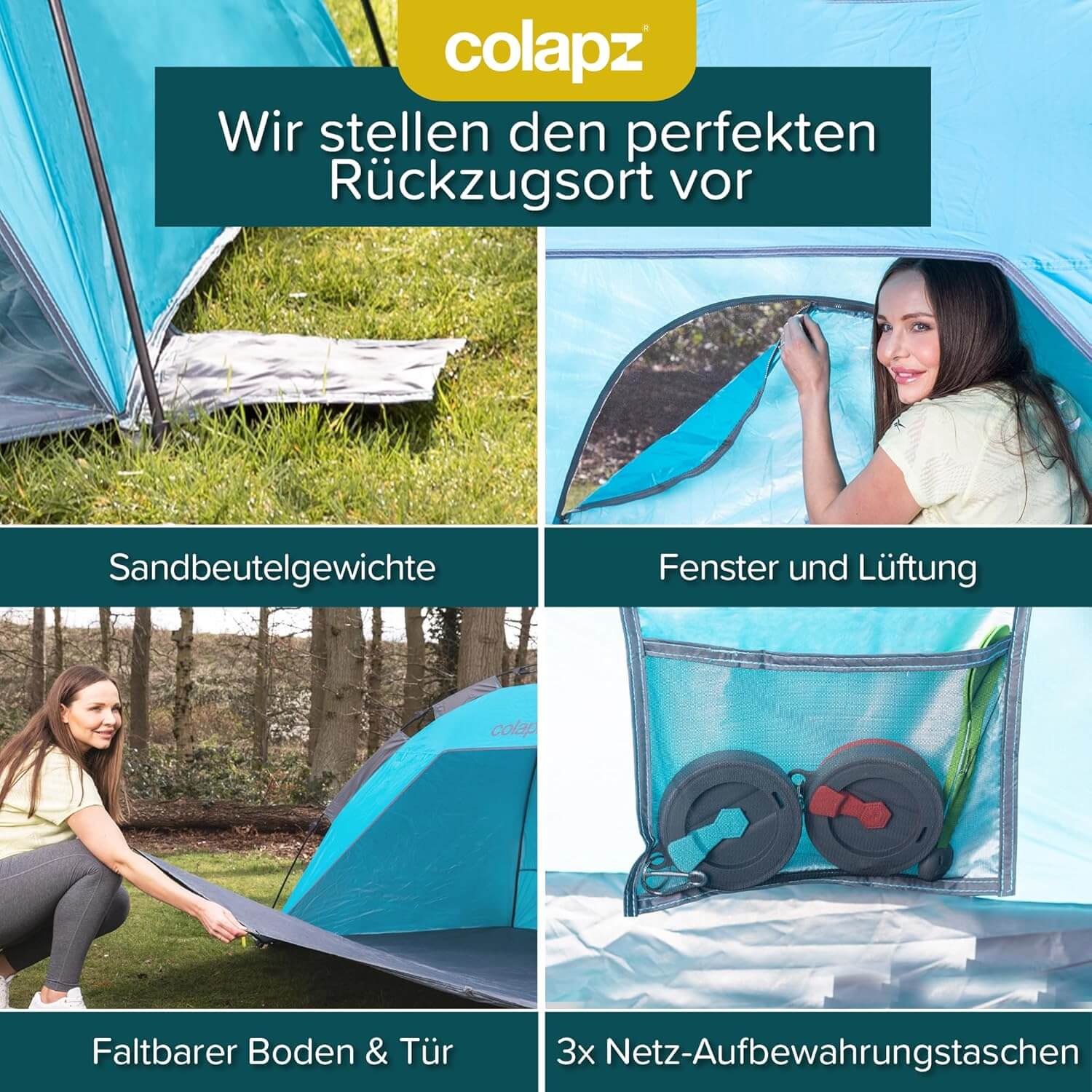 Със своите размери, тя предлага достатъчно пространство за 2 до 3 души. Това я прави подходяща за семейства, двойки или приятели. Удълженото дъно с цип позволява да създадете затворено пространство. Подходящо за преобличане или съхранение на лични вещи.