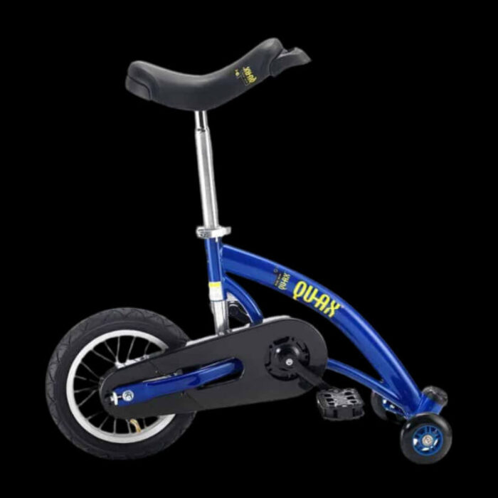 Тренировъчно колело за баланс – 12″ Gen 2 – Qu-Ax balance trainer е още един странен и чудесен модел от Qu-Ax Германия. Това тренировъчно колело за баланс има 12-инчово колело и използва верижно задвижване. Ездачите могат да управляват, като преместват теглото си. Работи подобно на моноцикъл, но е много по-лесно. Този модел се препоръчва за деца на възраст 6-12 години, с тегло до 60 кг. Баланс-колелото е смесица между моноцикъл и кикборд. За трениране на равновесието, за разходка с родителите или за път към детската градина. За децата, Balance-Trainer е невероятно забавно колело.