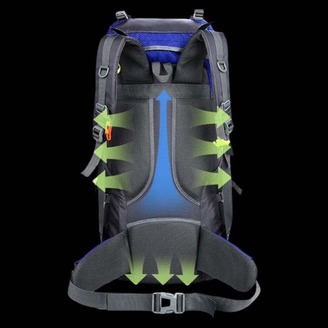 The Airflow back and strap system offers you long hours of use of the backpack even in high temperatures without a trace of sweat. Equipment hanging slots on the lid and base of the backpack allow you to place large items such as bedding. It helps in saving useful space inside the backpack. Ergonomic design of the backpack to avoid musculoskeletal problems.