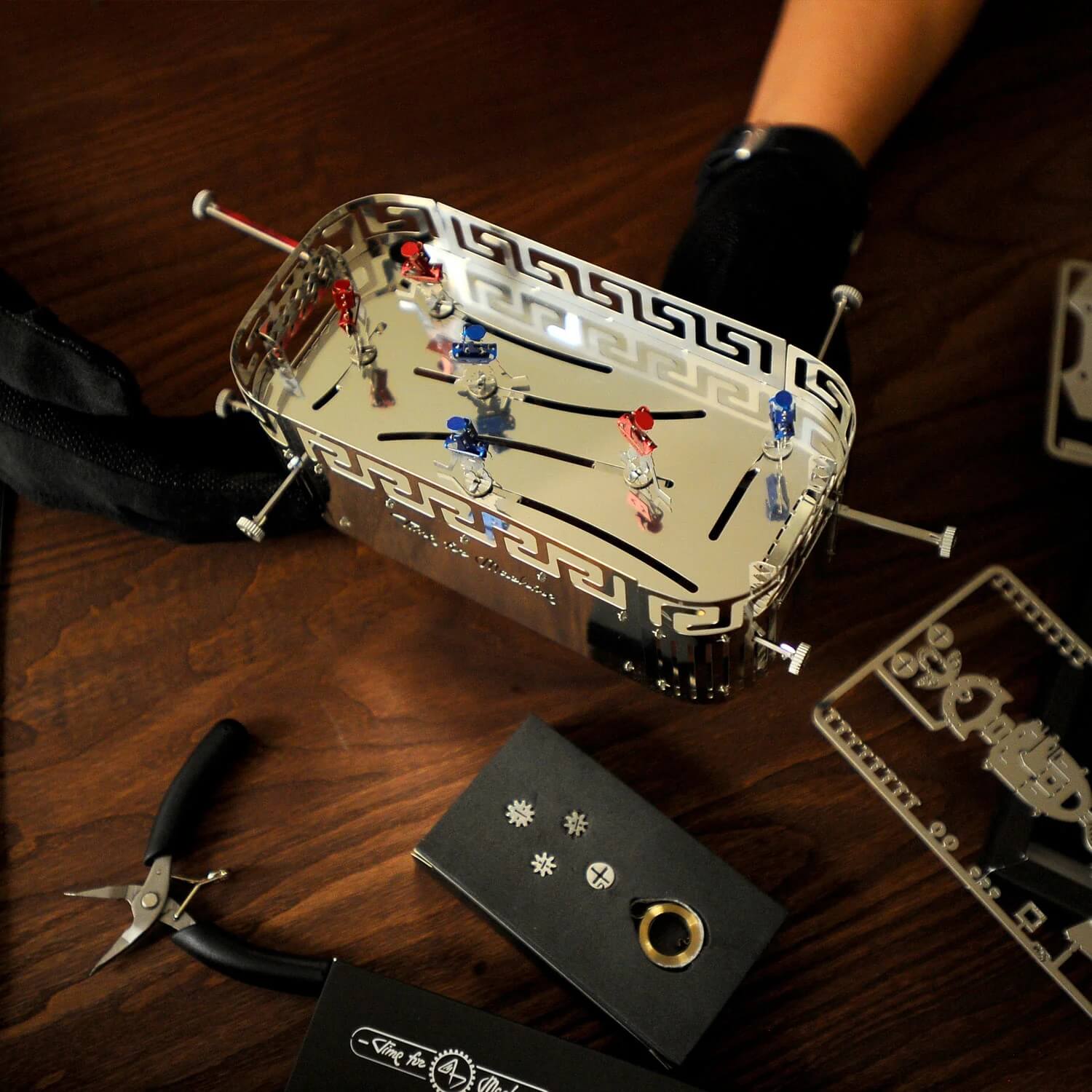 Вашите приятели и семейство се отегчават ужасно, докато вие се потапяте в сглобяването на конструктори? Най-накрая реализирахме една отдавна замислена идея, която ще спаси вашите отношения! Метален 3D пъзел – Medieval Hockey – Time For Machine 3D metal model puzzle е настолна игра за двама, която първо трябва да сглобите сами, и ще бъде перфектното решение. Нека състезанието да започне.