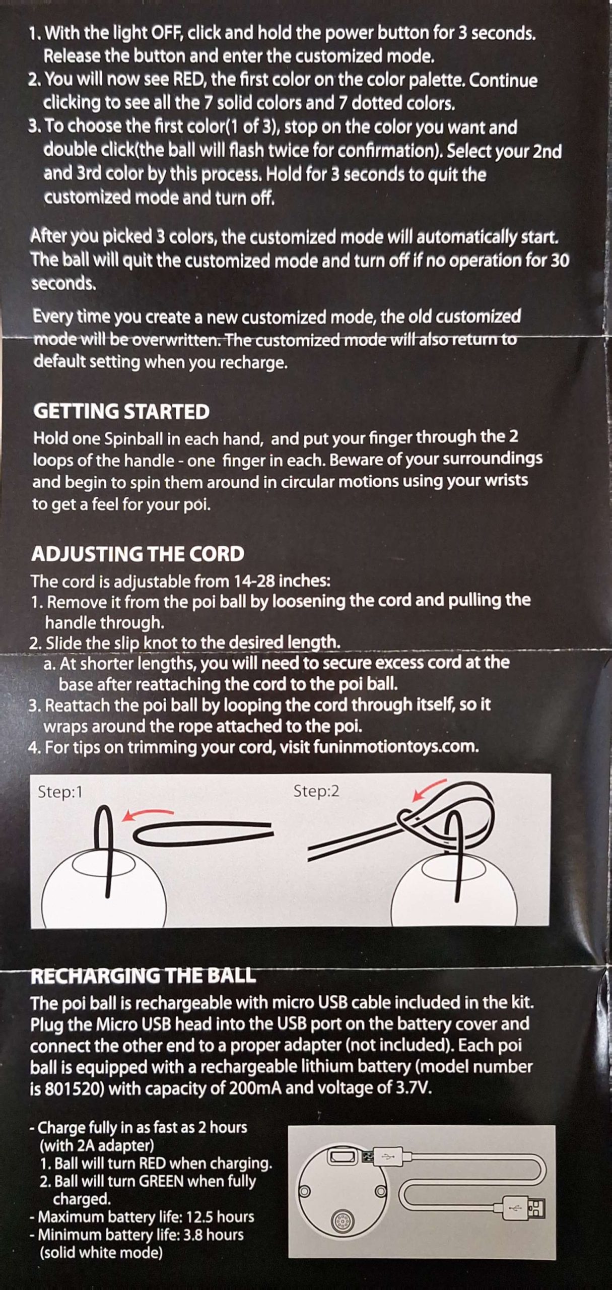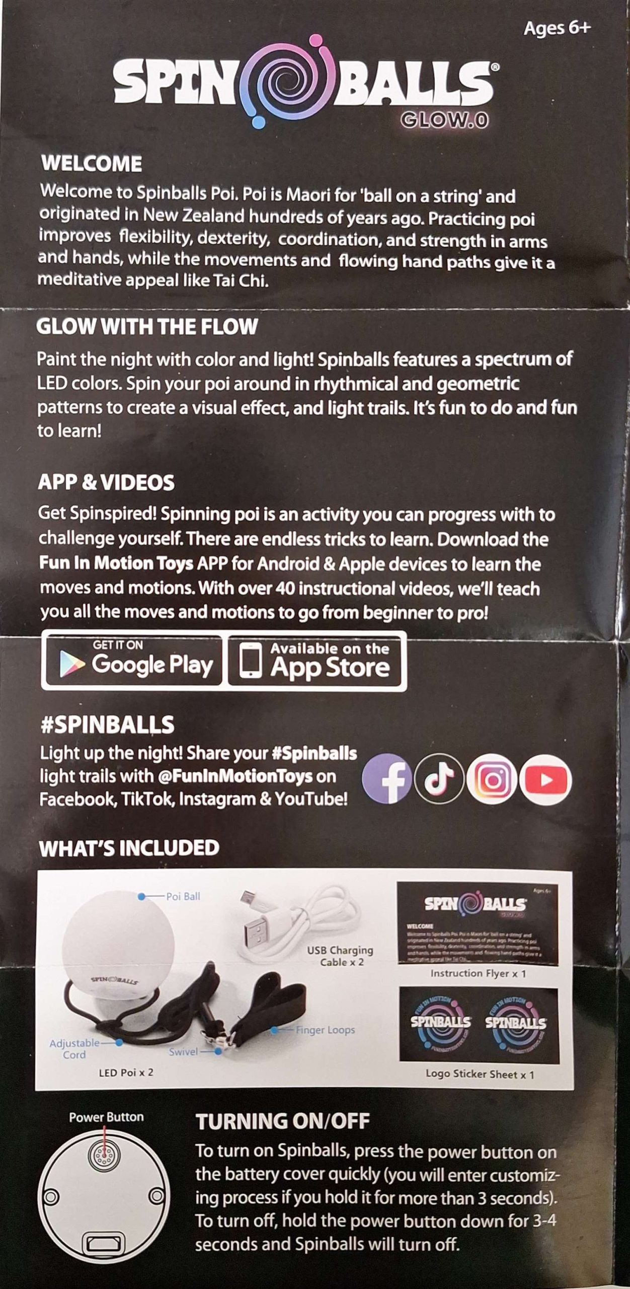 📖 Super popular poi from Fun In Motion, official distribution in the UK by Firetoys. Create glowing light trails at night with Spinballs LED Poi! This vibrant set is USB-rechargeable and boasts an astonishing array of 22 dazzling color light modes and patterns, allowing you to create mesmerizing displays that will leave your audience in awe. Each poi features soft-core balls designed for durability and comfort, paired with adjustable leashes that let you customize your experience. The double-loop handles provide a secure grip, ensuring that you can spin freely and express your creativity with confidence.